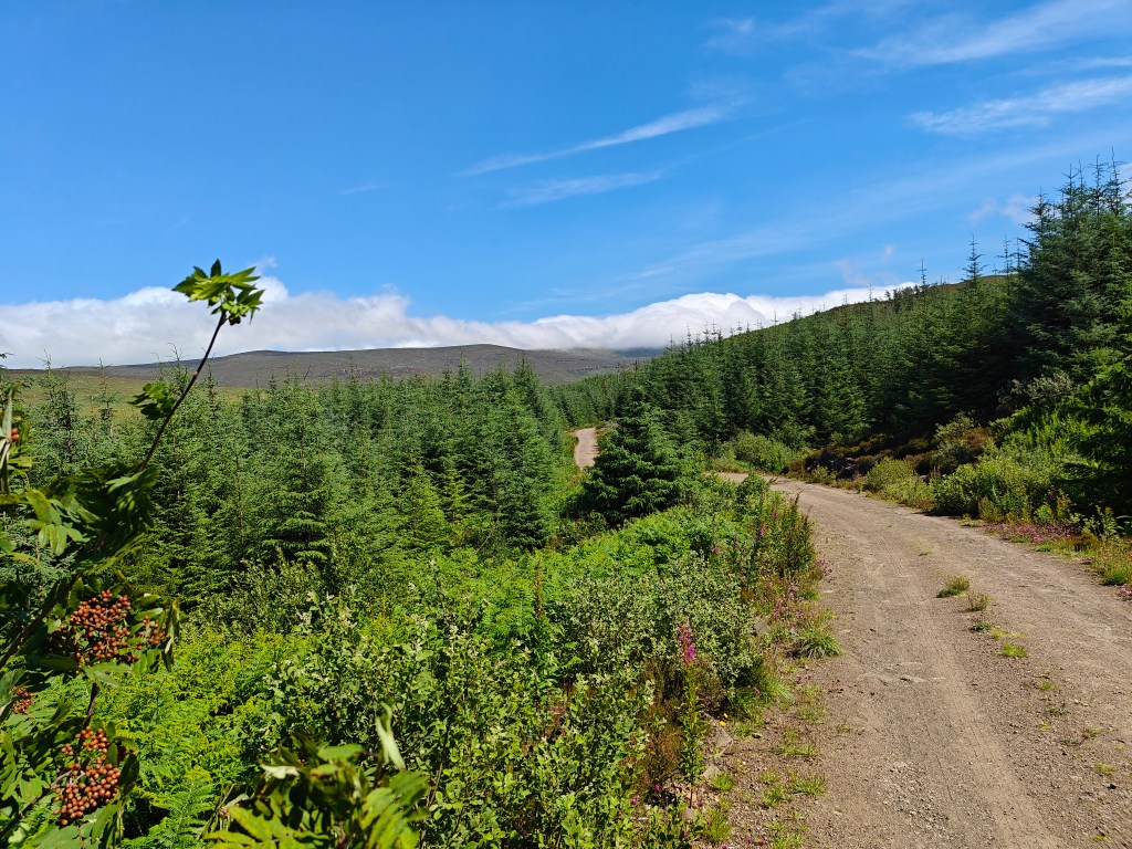 Head back down the hill, keeping closer to the ridgeline above the cliff face to the north this time and you’ll soon have visibility of the entire valley which extends much further than it may appear from the forestry track.