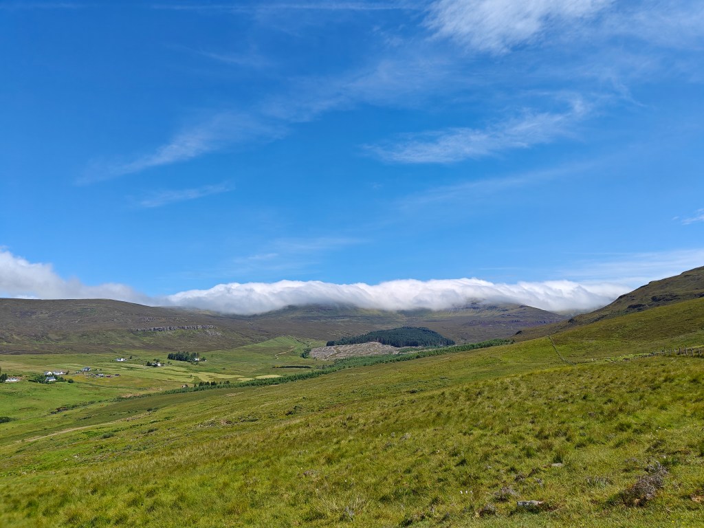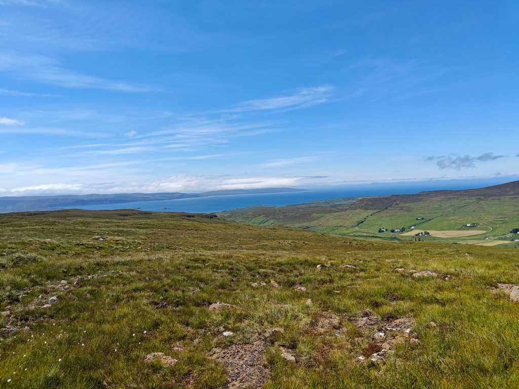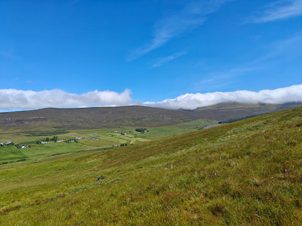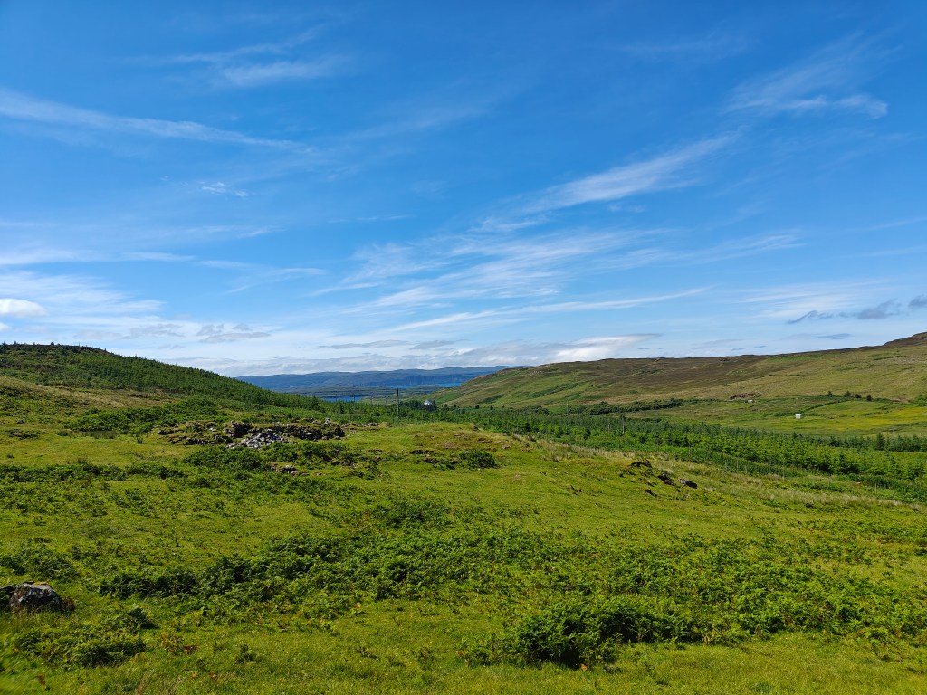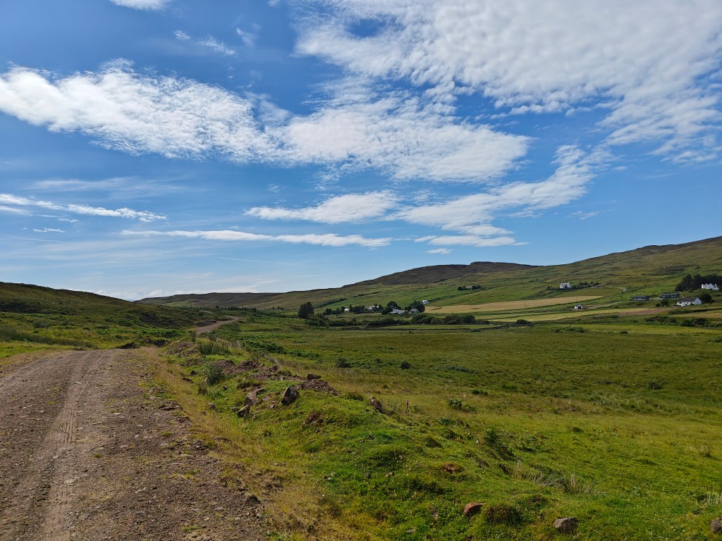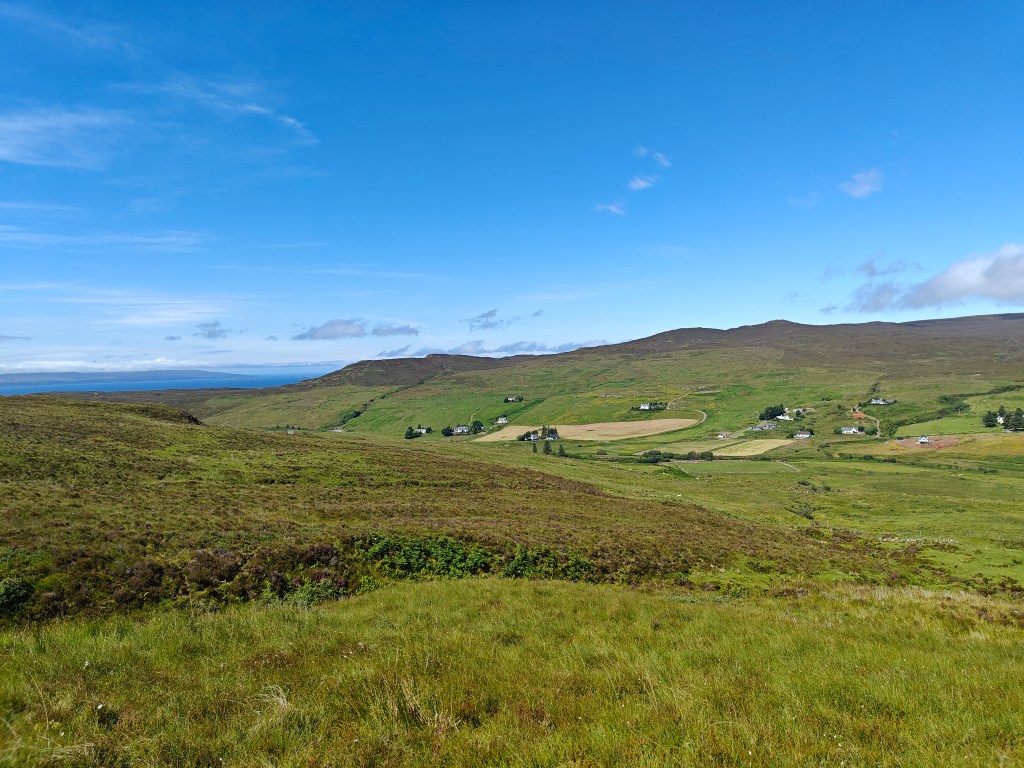 As you first start to climb Creag na Cuthaige from the track, you very quickly come upon a large set of ruins which aren’t immediately obvious from the track itself. These are the ruins of Glenhinnisdal, a small crofting community of around 13 homes, which were cleared in 1820 or therabouts, with the land being added to the already large farm of Kingsburgh. This is just one of a large number of small communities that were home to families across the valley.