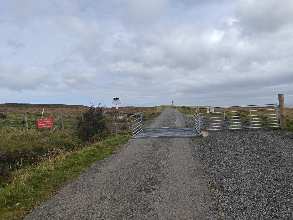 From there, navigate through the fields southeast towards Stac Lacklainn but do not cross the fence directly infront of the stack. Follow the fenceline around to the west and pass through a gate to enter another smaller field and then yet another gate to get to the south side of Aird House.