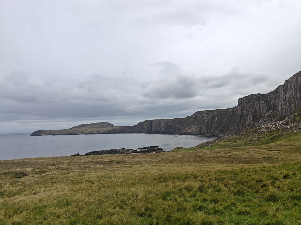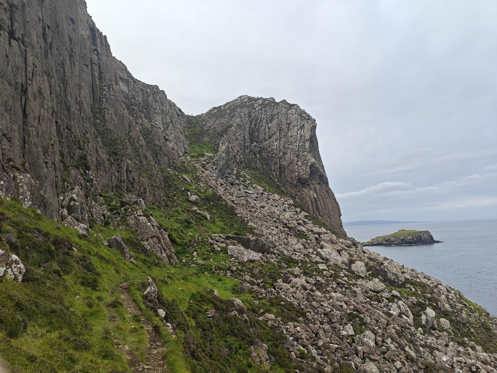 This is one of the more enjoyable trig walks on Skye, leading you to the island’s most northerly point at the Rubha Hunish peninsula (Huinish Promontory in Gaelic). The route takes you along a dramatic cliff-face trail, past a bothy boasting the best sea views on the island, and through quiet trails to the Ben Volovaig hill, before returning via the picturesque Gobhlaig Bay. I highly recommend detouring to the peninsula if conditions allow and you’re up for it, though it will extend your journey by about an hour.