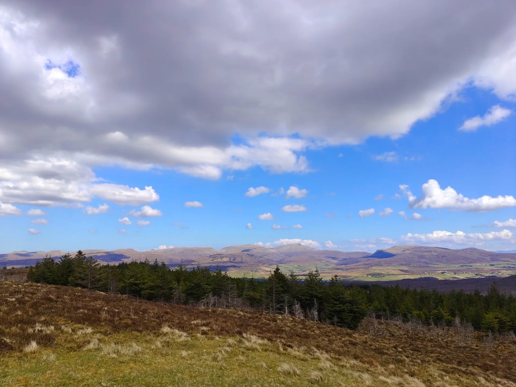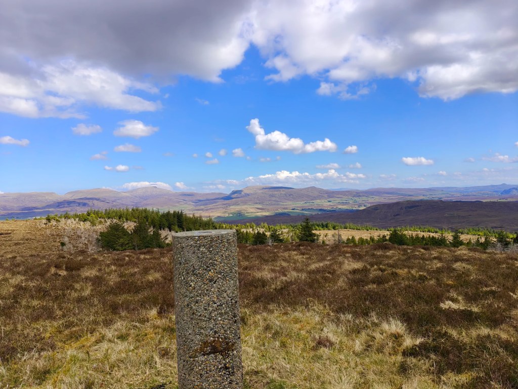 From here, leave the track and head off to the left, crossing over rough, boggy ground. Look for a suitable place to cross the fence (there’s no official stile) and begin the ascent up the hill. Stick close to the treeline on your right to avoid the worst of the marshy patches.