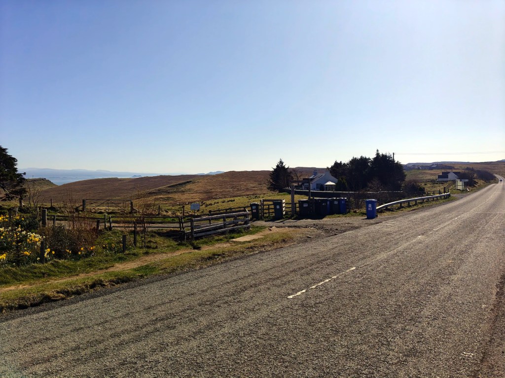 Park at the Brothers Point parking area, which is a large layby on the western side (left if approaching from Portree) of the main road through Culnacnoc. From here, walk south along the road for a short distance until you reach the first turning on your left.