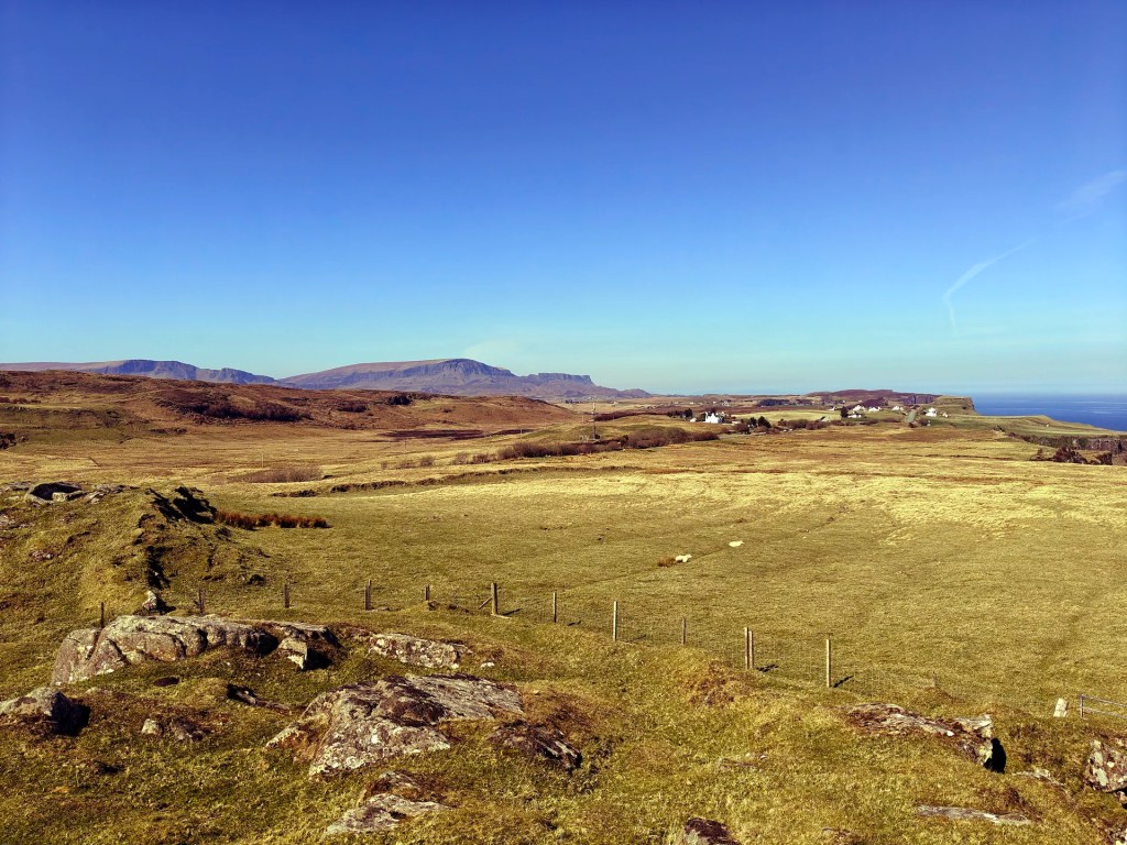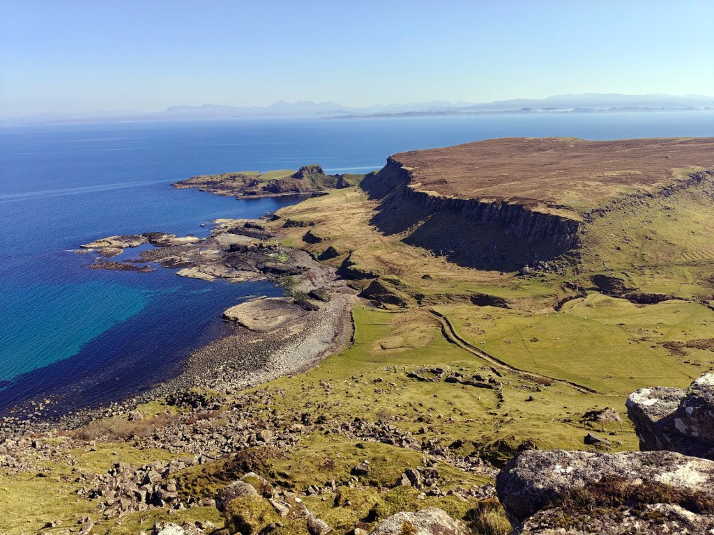 Adding to the area’s remarkable heritage are the dinosaur footprints preserved in ancient mudflats near Port Earlish bay. Dating back around 170 million years to the Middle Jurassic period, these tracks were likely left by long-necked sauropods and sharp-toothed theropods, offering a rare window into Scotland’s prehistoric past at low tide.