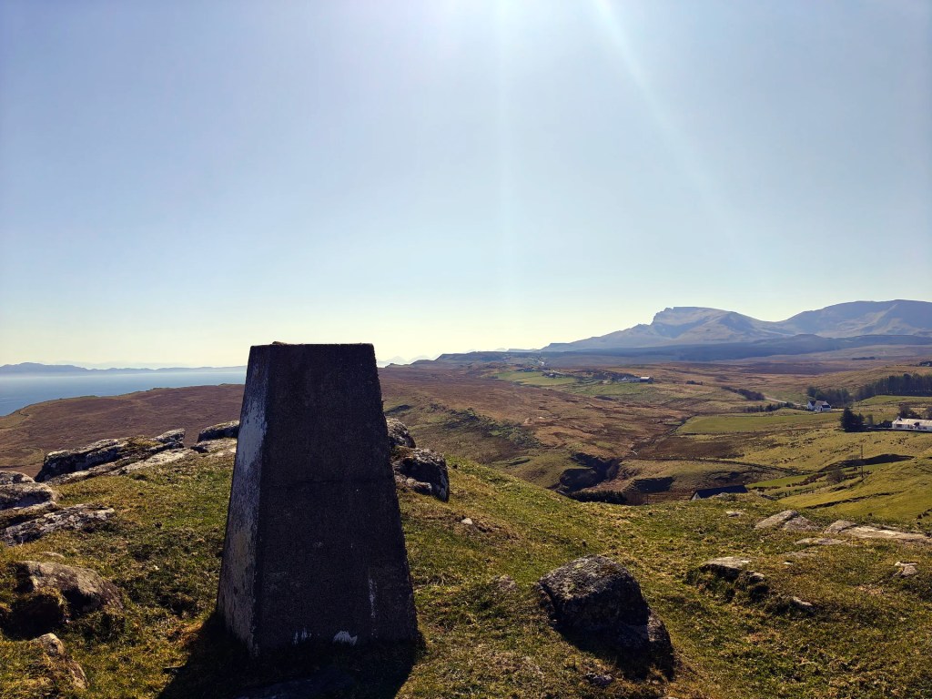 You’ll soon spot the trig point ahead, sitting on the highest point of the hill. It’s a fantastic place to pause and enjoy lunch with sweeping views of the famous Brothers Point to the east.