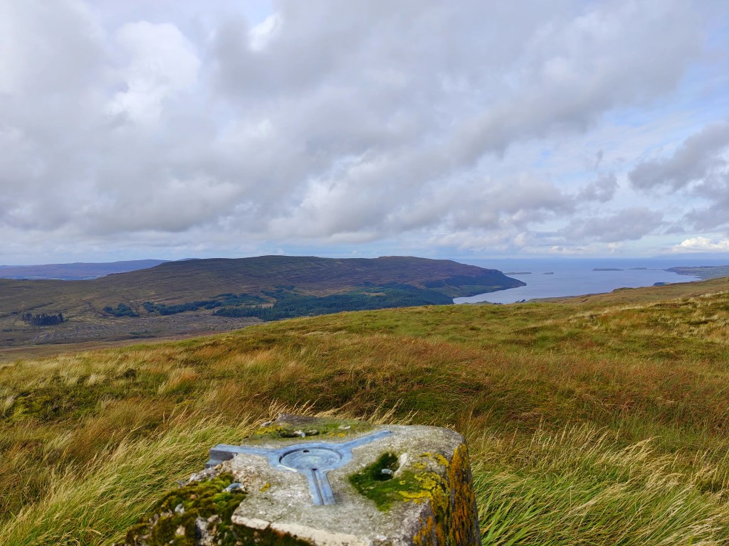 This walk to the trig point on Beinn na Boineide is a deceptively demanding outing across rough, energy-sapping ground. The terrain is dominated by deep, spongy moss, interspersed with bracken and long grasses, which can make progress slower than expected. While the gradient is generally gentle, the underfoot conditions make this feel like a much tougher walk than it first appears. Those who persist are rewarded with fine views towards the Beinn Breac peninsula to the north-west and across Edinbane Bay to the east.