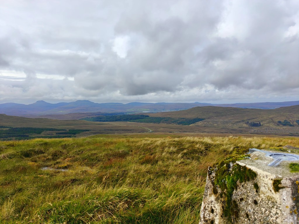 The climb remains steady rather than steep, gradually bringing you onto the broad summit plateau. Once on top, the trig point is easily located. Take some time to explore the edges of the plateau, where the best views open up across the surrounding landscape, offering a greater sense of height than the gentle ascent might suggest.